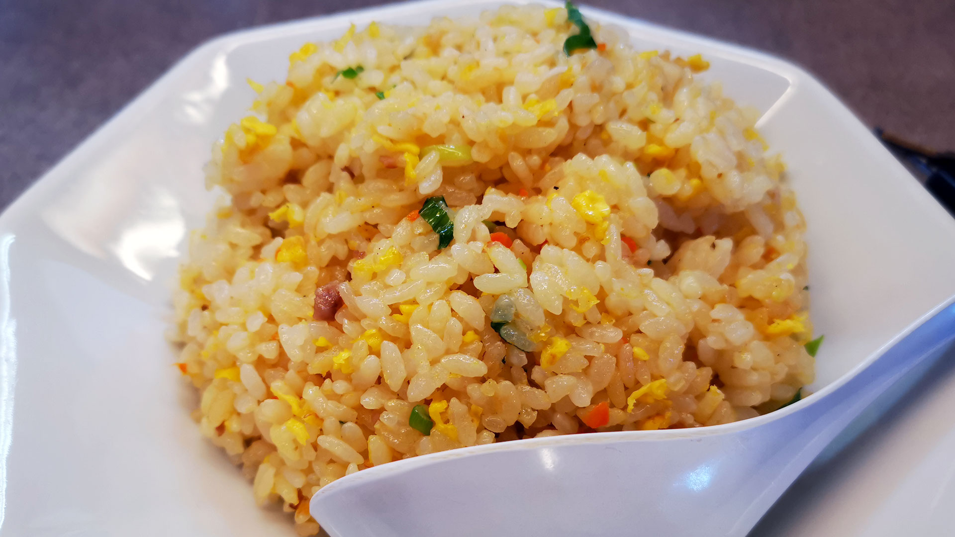 醤油ラーメン480円(税込み)に100円プラスするだけで半チャン醤油ラーメン580円(税込み)に昇格します。フルボリュームのラーメンにお茶碗一杯以上のチャーハンがセットになります。いうまでもなく満腹納得のコスパですぞ。